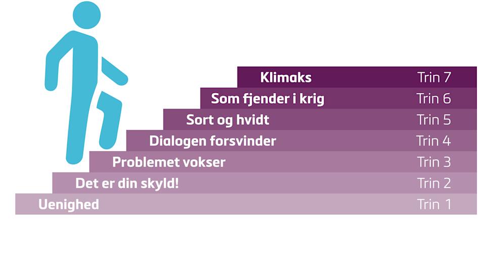 Grafik der viser de 7 trin af den opadgående konflikt.